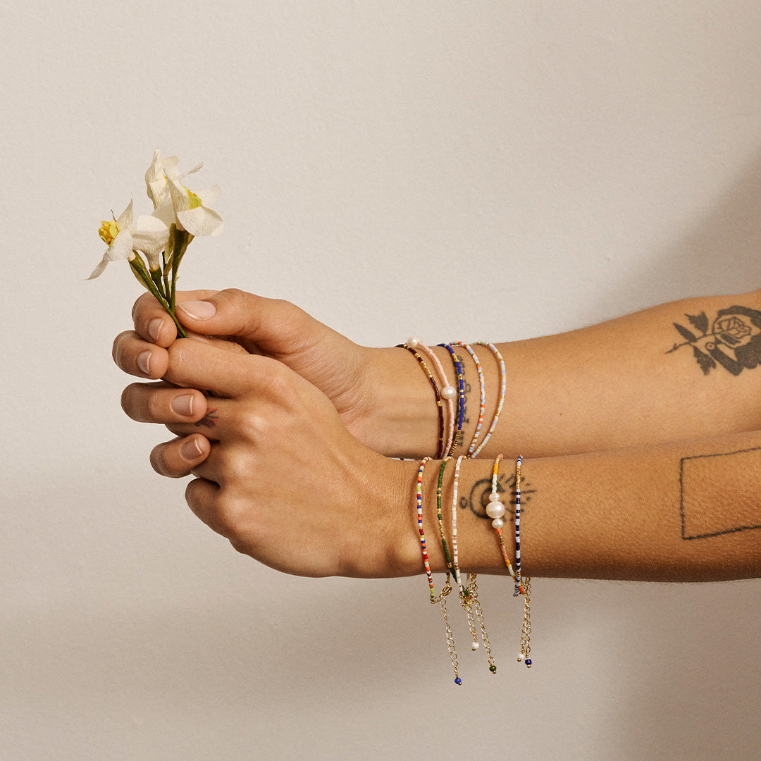 Våra Miyuki-smycken är designade med mångsidighet i åtanke. Smyckena kan bäras ensamma som en fin och diskret färgaccent eller kombineras med andra kedjor, örhängen och armband för ett mer personligt uttryck. Miyuki-pärlornas struktur och färgspel gör dem vackra tillsammans med både blanka metaller och mer organiska former, vilket öppnar upp för många stylingsmöjligheter. Det innebär att kollektionen inte bara är skapad för en viss säsong eller ett specifikt tillfälle, utan för att bli en naturlig del av din smyckesgarderob. Om du letar efter moderna pärlsmycken som är enkla att använda och lätta att göra till dina egna är Miyuki-pärlor ett självklart val.