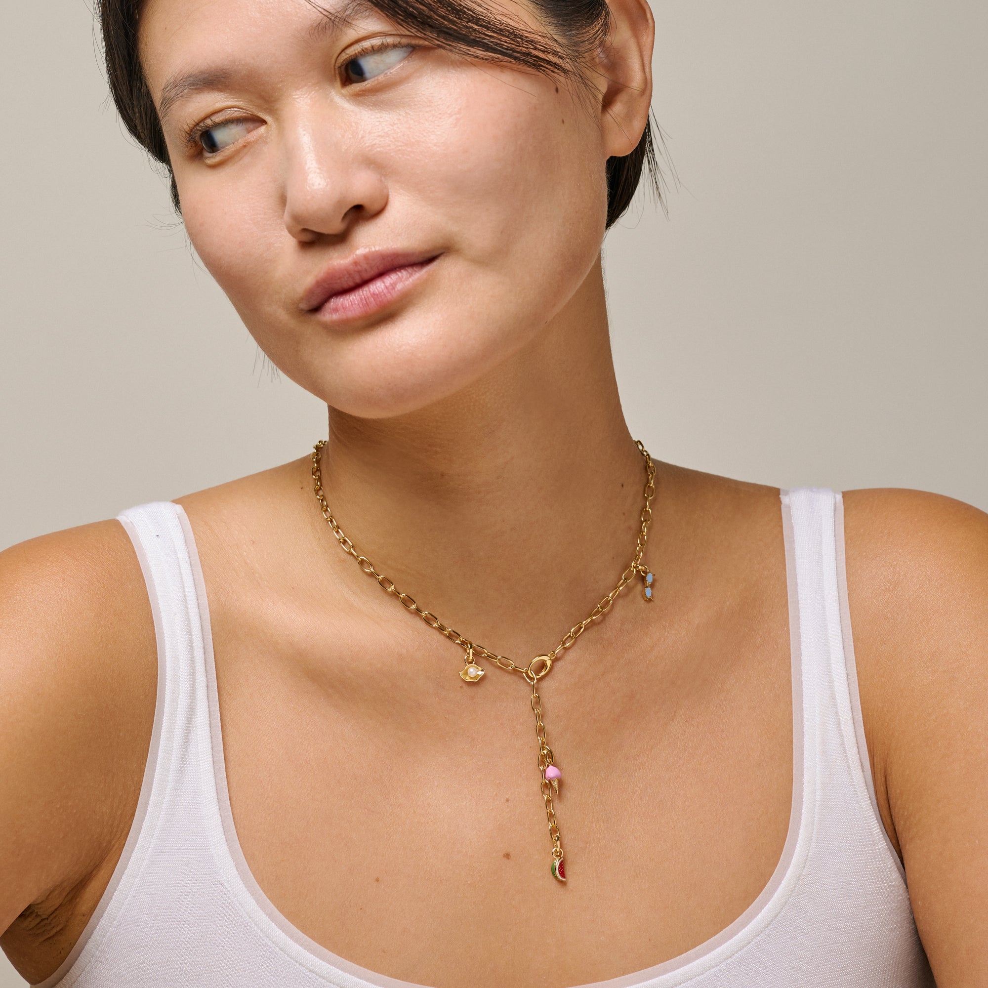 Om smycket: Shiny Shell är formad som en organisk, gyllene musselskal som öppnar sig kring en skimrande sötvattenpärla. Musslan symboliserar skydd och styrka, medan pärlan representerar skönhet, visdom och renhet. Tillsammans blir de en liten symbol för inre styrka och tidlös elegans. Klämmekanismen på Shiny Shell-charmen kan tas bort, och med den återstående öglan kan du fästa musselkalet på en stor del av våra hoops. Hänget är särskilt avsett för vår armbands- och halsbandsserie kallad Charm, liksom våra enkla halsband och armband.
