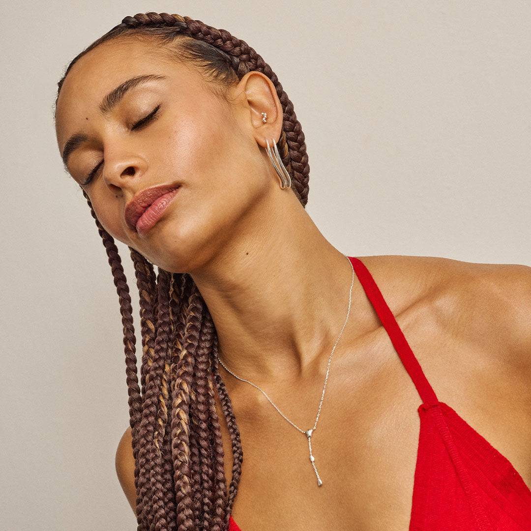 Om smycket:Örhänget Elvira i silver är ett festligt statement-örhänge med en elegant och skulptural formspråk. Den långa, svängda siluetten faller vackert från örat och skapar en iögonfallande uttryck med tyngd och rörelse. Den blankpolerade silverytan reflekterar ljuset levande och tillför en lyxig glans, vilket gör örhänget perfekt för speciella tillfällen. Designen kombinerar enkelhet med stor effekt, vilket skapar ett sofistikerat men kraftfullt uttryck. Elvira är ett örhänge som utstrålar självförtroende och ger en glamourös touch till alla klädsel. Elvira-örhänget finns också i guld.