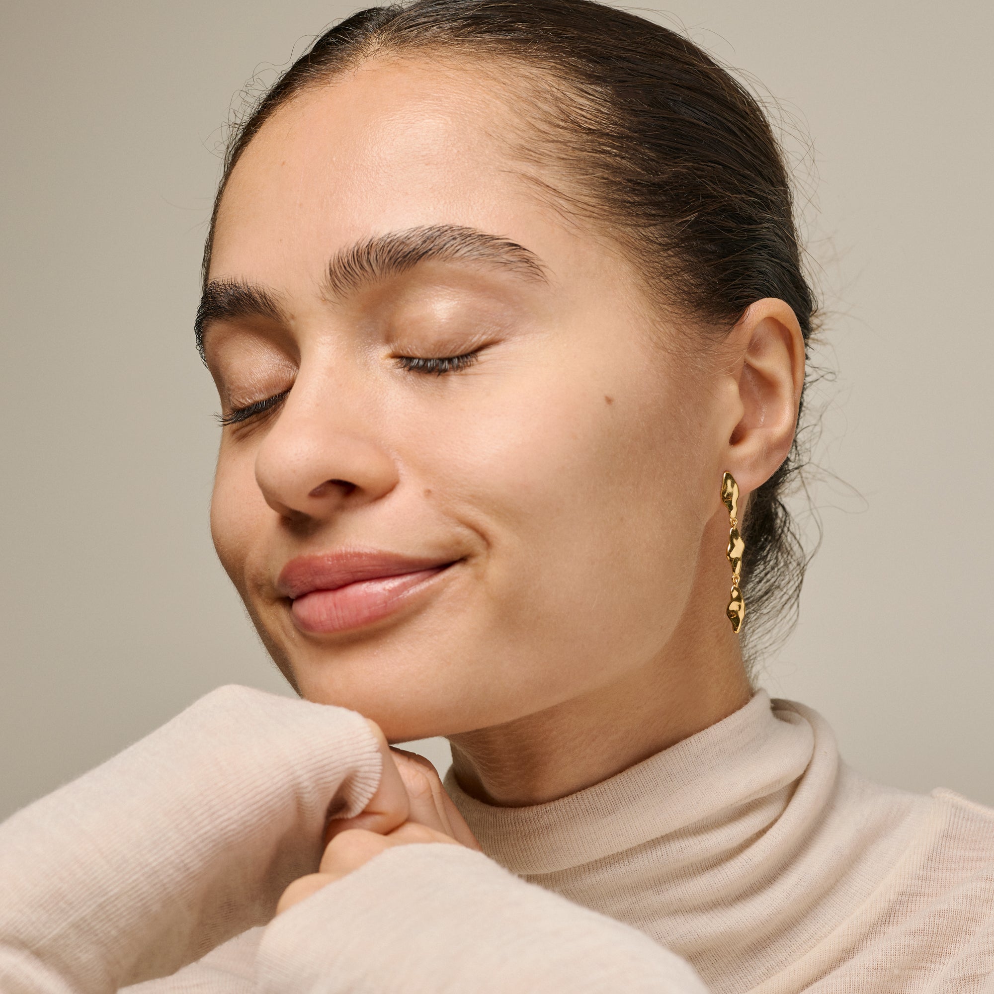 India Medium örhänge är en elegant tolkning av vårt ikoniska India örhänge - med tre handgjorda länkar som bildar en smal och organisk silhuett. Designen har fortfarande den exklusiva och iögonfallande uttrycket, men i en lättare och mer vardaglig version. Det perfekta smycket för dig som vill ha något speciellt - även när det inte är fest.Örhänget finns också i en silverversion.