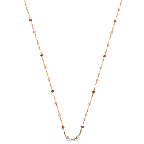 Om smycket:De handmålade emaljkulorna dansar försiktigt ned längs kedjan här i en färgpalett av varma röda och mjuka rosa toner – en kombination som utstrålar både energi, kvinnlighet och glädje. Hjärtat högst upp ger en romantisk och charmig touch, vilket gör denna örhänge riktigt speciell. Perfekt för dig som älskar klassiker med personlighet och färg. Bär den ensam som en liten statement – eller tillsammans med dina andra Lola-favoriter för ett lekfullt och kärleksfullt uttryck.