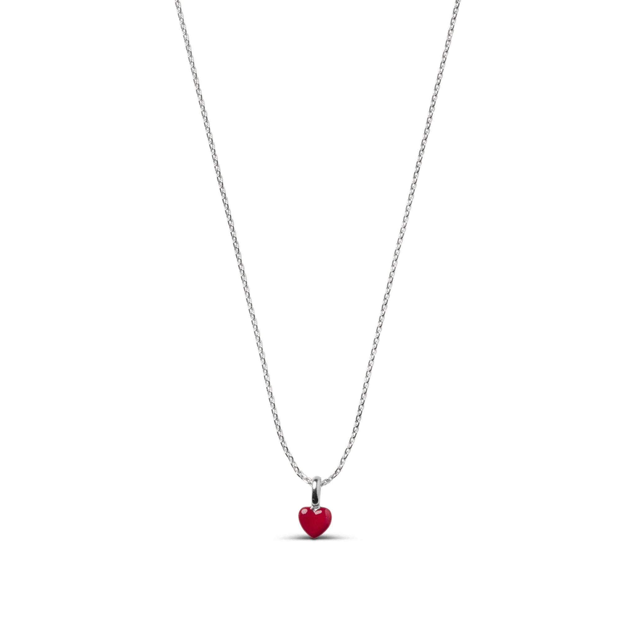 Om smycket:Amore-halsbandet från ENAMEL Köpenhamn är ett enkelt halsband med en betydande hjärtanvändare i olika färger. Amore betyder kärlek på italienska, och det är precis vad detta vackra halsband utstrålar. Det är kärleksfullt lekfullt på ett coolt sätt och blandar sömlöst med dina andra halsband. Hänget är avtagbart, så att du får två halsband i ett. Amore i 925 sterlingsilver består av en enkel, fasetterad kedja med en polerad hjärtanvändare som ger dig ett silverhalsband med mening och tankar om de du älskar mest. Den varma bordeauxfärgen är ett bra alternativ till vår andra klassiska röda färg. Den kompletterar huden och silverytan perfekt och ger en subtil och sofistikerad twist.