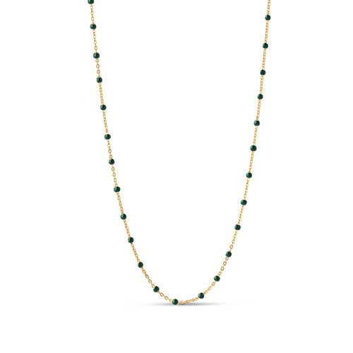 Injicer en sprudlende grøn farve i din stil med Petrol Green halskæden. Denne elegante halskæde præsenterer små farverige emaljedetaljer, der tilføjer en farverig og sofistikeret accent. Perfekt til at kombinere med andre halskæder. Petrol Green halskæden er tilgængelig i flere varianter og er lavet af sterlingsølv og belagt med 18K guld. De håndmalede emaljekugler giver et unikt touch.