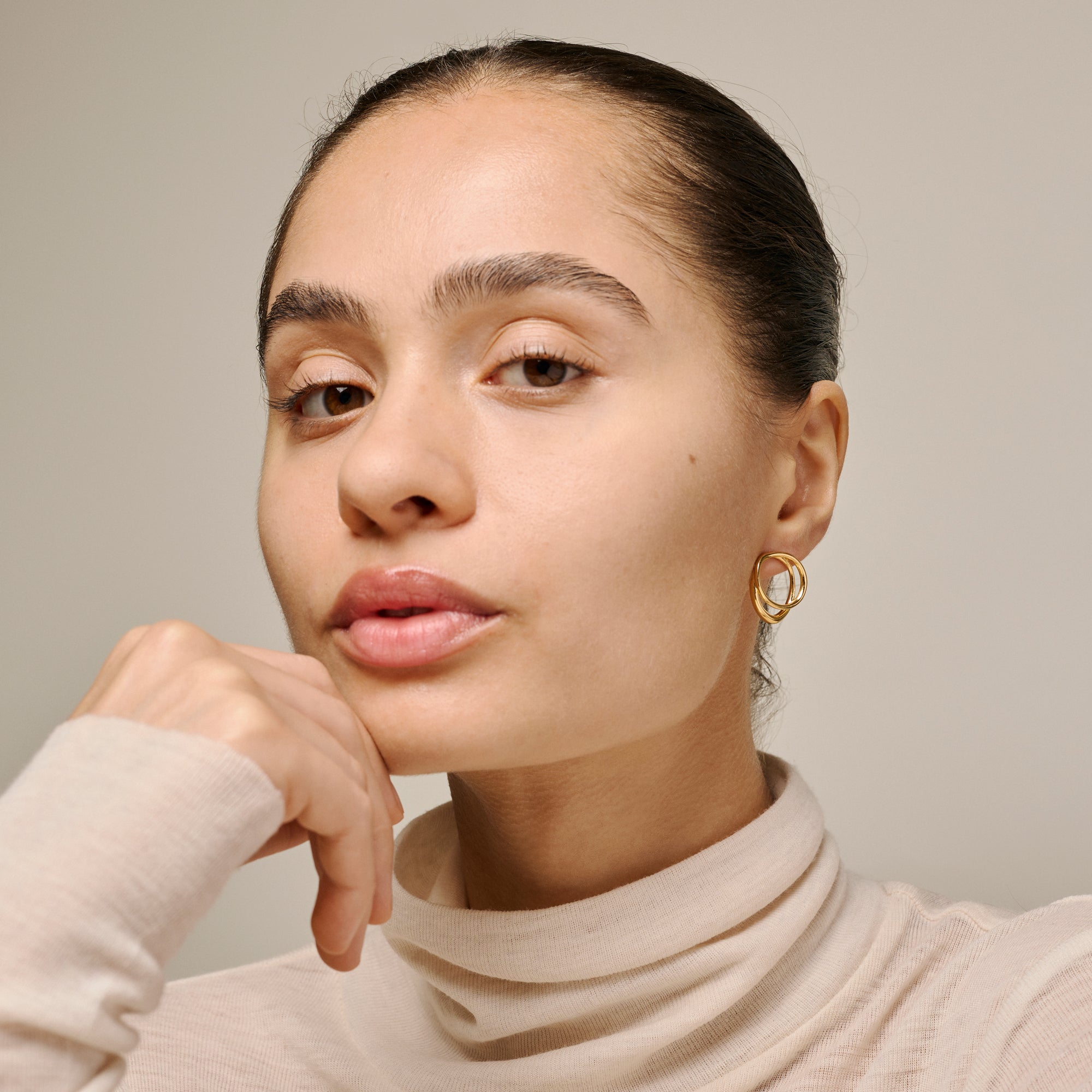 Om smycket:Bellu Stud är en elegant och organisk tolkning av den klassiska cirkeln. De två mjuka ringarna är försiktigt snurrade och lindar sig runt varandra i en harmonisk och modern design. Örhängena har en skulptural uttryck, men är ändå tillräckligt enkla att bäras varje dag. En smycke som balanserar sofistikering med coolhet.